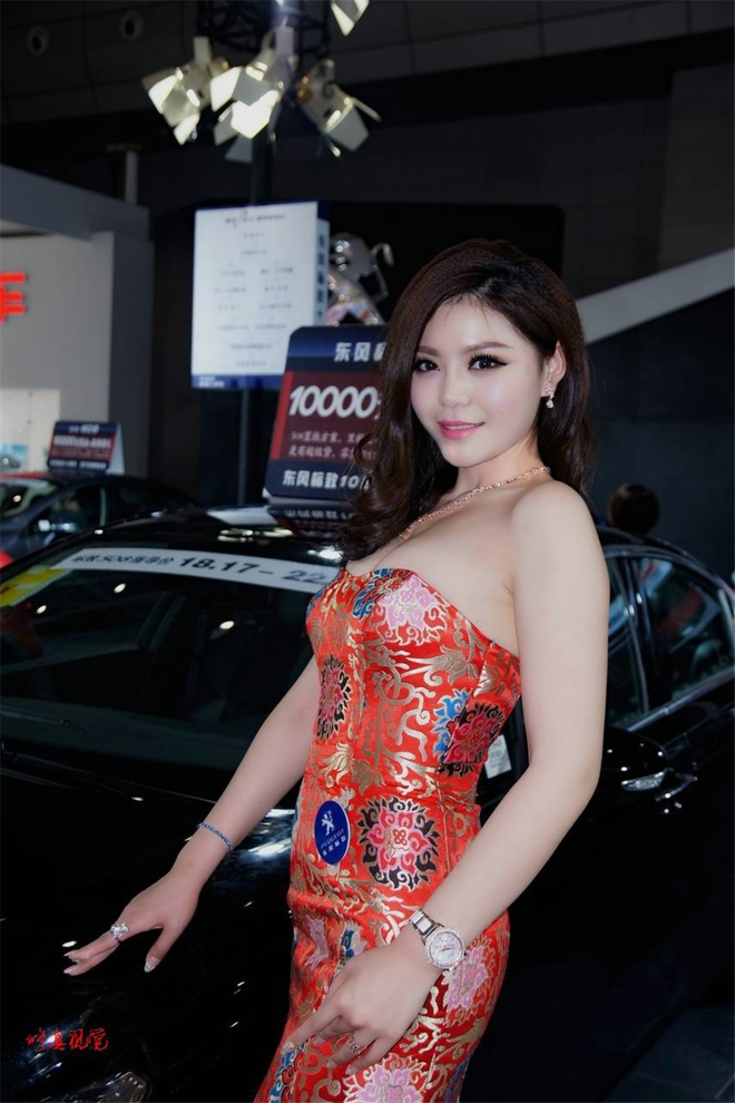 火辣娇艳时尚红唇美女车模特色抹胸裙车展娇媚销魂惹火诱人写真